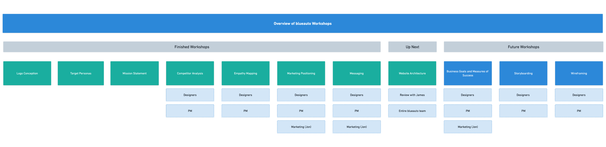 After a clear understanding of our brand identity, I led a workshop to align on the website architecture and the content we needed to bridge the gap between consumer and business goals. We shared this with the CEO and the entire Blue Auto team for alignment before moving onto wireframing and designs!